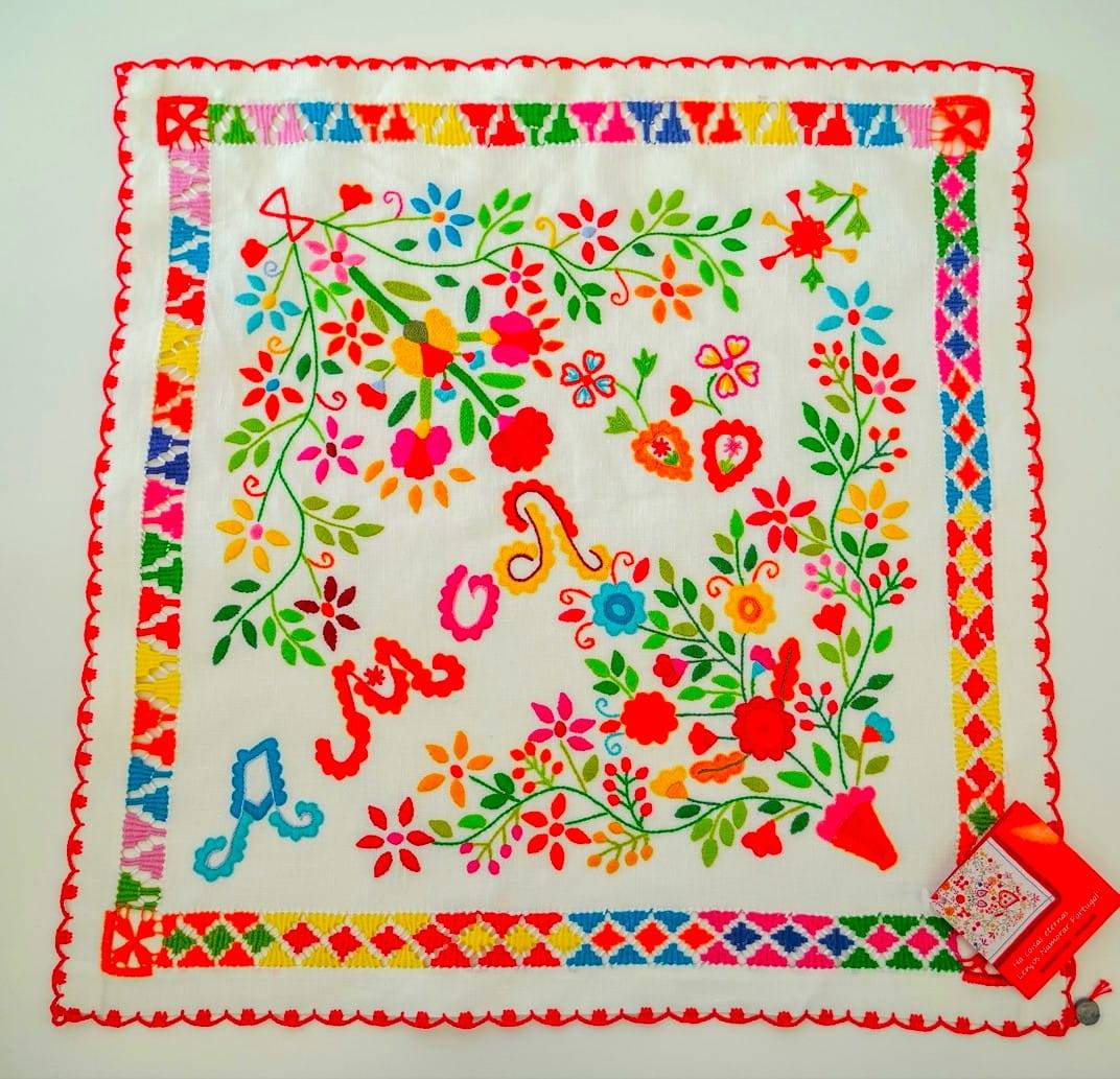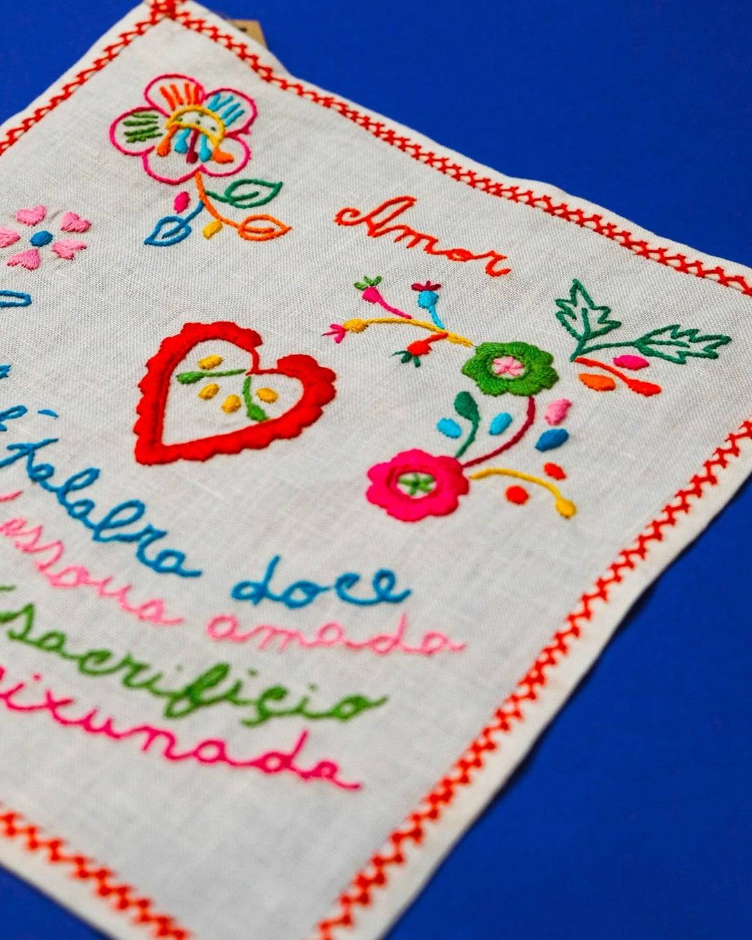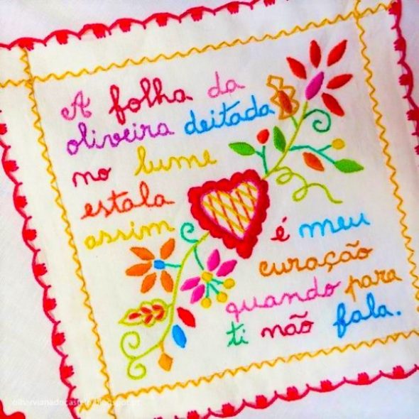 A sua origem simples e bela está presente nos símbolos bordados: o coração (como símbolo do amor), a chave (do coração, para o abrir), o passarinho (como mensageiro de segredos) e o barco (testemunho das constantes viagens para Brasil dos seus apaixonados) mas a singularidade está nos versos escritos pelas jovens, no português da época, com erros ortográficos, letra quase infantil e extremamente coloridos e que têm como temas ou mensagens mais recorrentes a Amizade, o Amor e a Saudade.